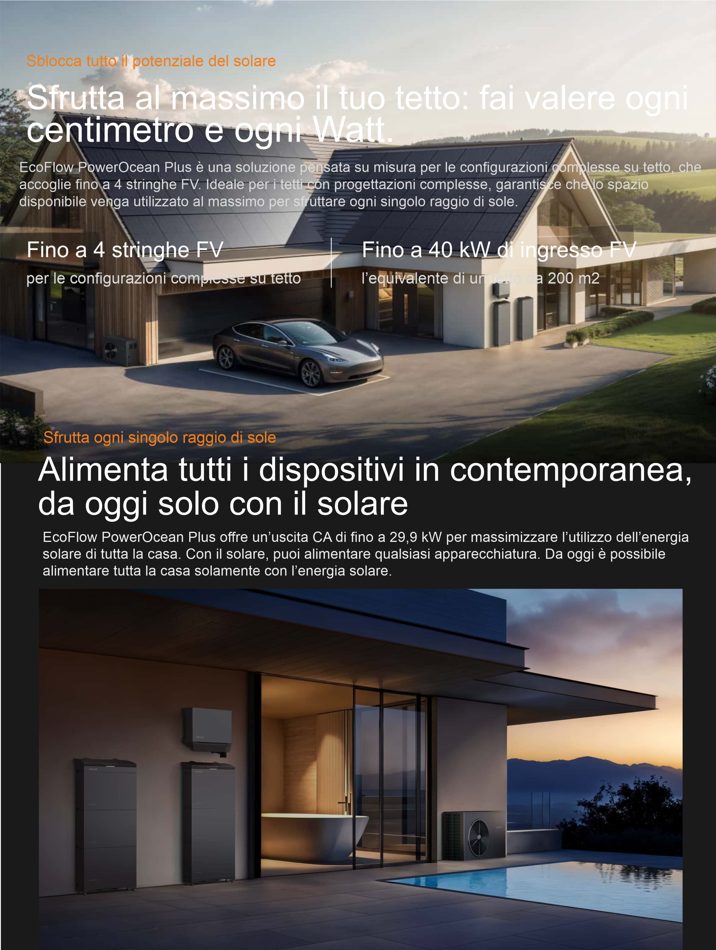 L’inverter ibrido trifase EcoFlow PowerOcean, nella variante da 15KW-20KW-25KW29,9KW, rappresenta l’apice dell’ottimizzazione e dell’accumulo dell’energia solare, con l’obiettivo di rendere la vostra casa completamente autosufficiente. Questo inverter trifase è stato progettato specificamente per l’uso nelle case che cercano una soluzione potente e affidabile per sfruttare l’energia solare.