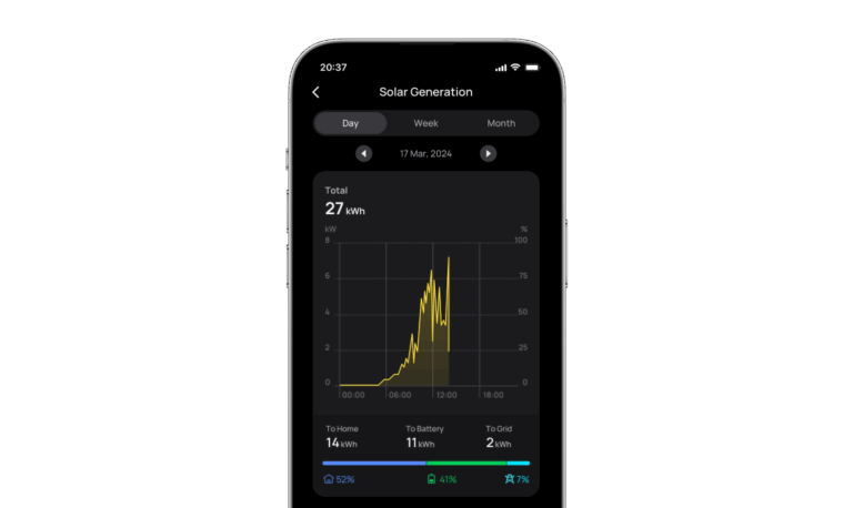 Monitora il consumo di energia, l'apporto solare e l'accumulo della batteria in tempo reale tramite l'intuitiva app EcoFlow e il portale web. Dai priorità all'uso dell'energia solare e ricarica automaticamente la batteria con l'energia in eccesso per l'uso notturno.