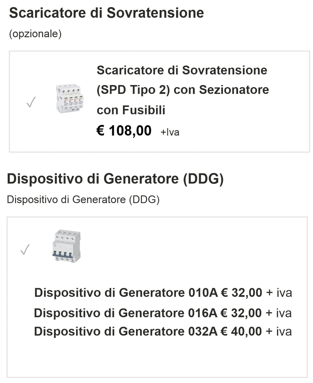 • Dispositivo di Generatore (DDG): Interruttore magnetotermico in curva C, 4P e potere di interruzione di 6kA