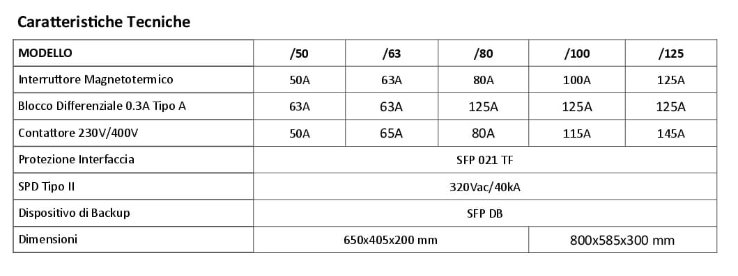 • Dispositivo di Protezione dalle Sovratensioni: SPD di tipo 2 3P+N con corrente massima di scarica (8/20µs) di 40 kA per polo;