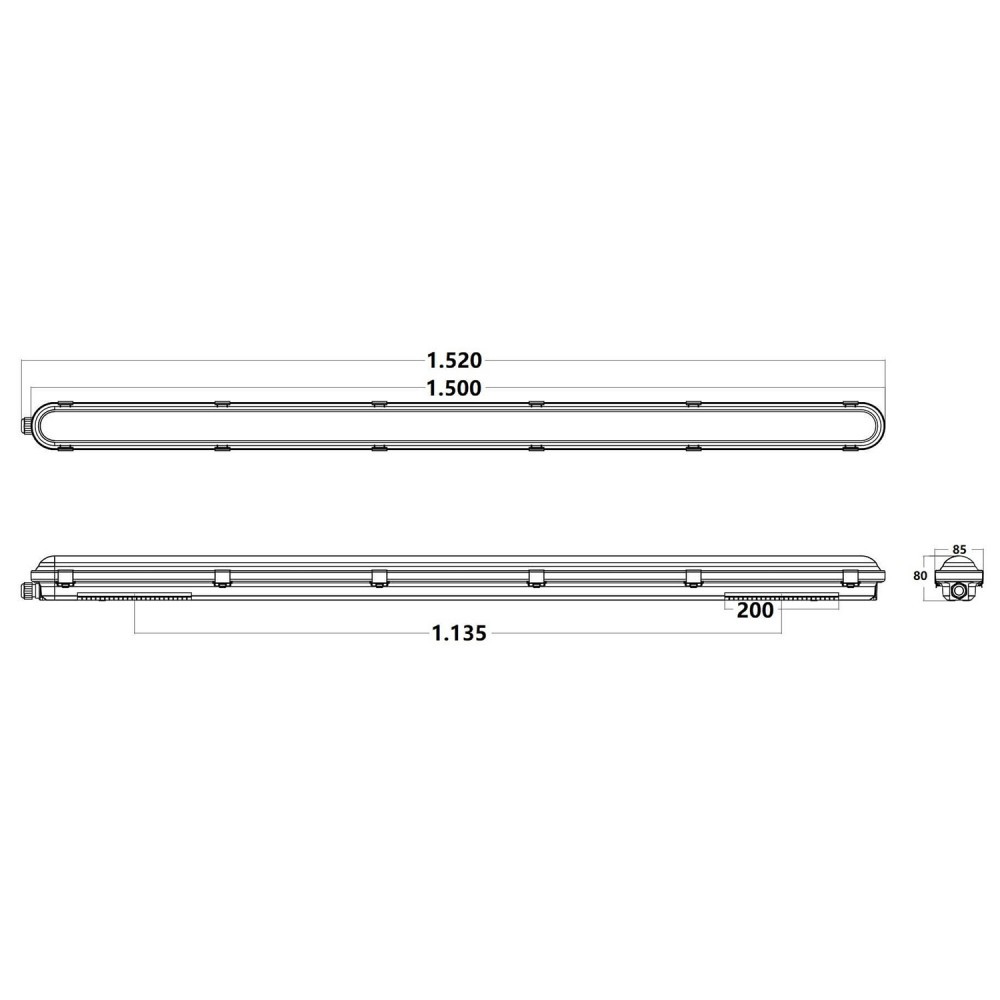 Plafoniera Stagna LED da 150cm e 55W, dotata di modulo di emergenza integrato, driver OSRAM ICUTRONIC, chip LED Philips Lumileds e tanti altri vantaggi: