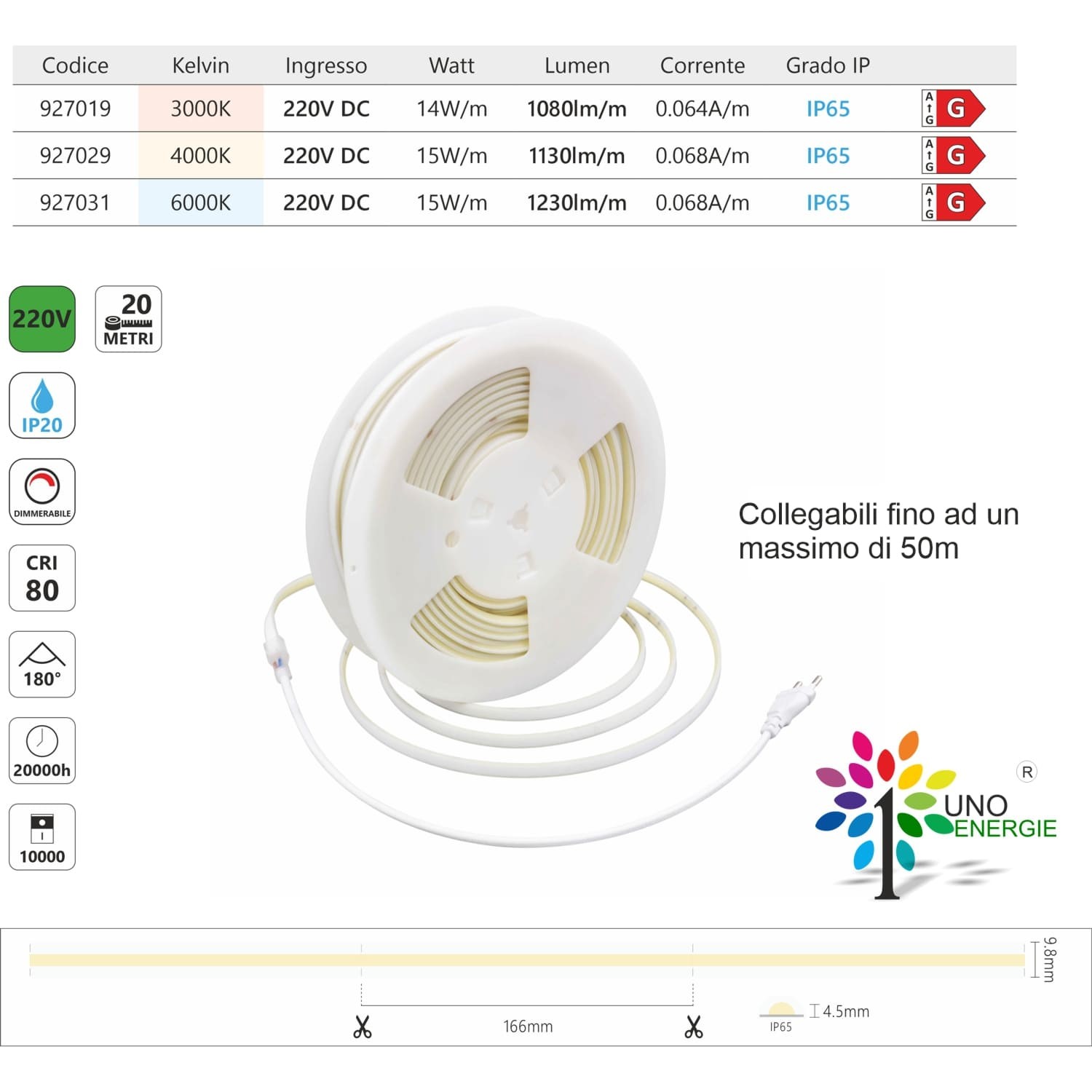 STRISCIE LED COB MILK IP65 3000/4000/6000K 220V 14/15W/m 1080/1130/1230lm/m