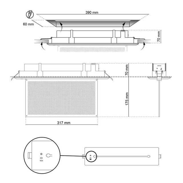 Lampada di emergenza da incasso a bandiera della serie Professional. È in grado di lavorare in modalità Sempre Accesa, Solo Emergenza o Cinema Mode. Dotata di un pacco batterie a lunga durata, offre tante caratteristiche uniche:
