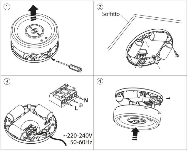 Questo dispositivo è pensato per installazioni professionali. Ha la funzione di emergenza, quindi si accende solo in caso di blackout.